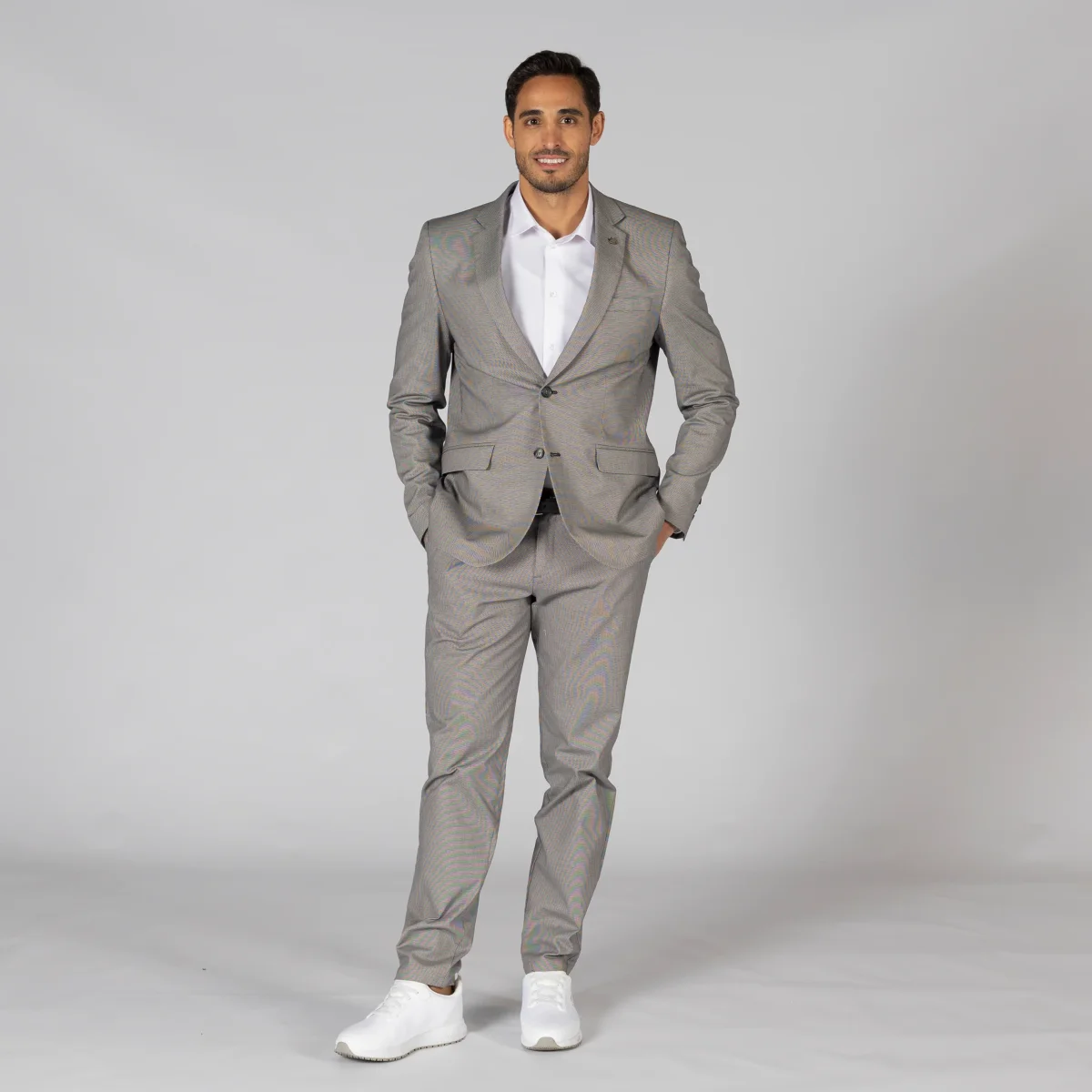Esta americana está confeccionada en tejido MEETING, compuesto por un 98% de algodón y un 2% de elastano. El tejido Meeting es conocido por su durabilidad y comodidad, lo que permite a quienes la visten moverse con facilidad durante largas jornadas de trabajo. Además, el tejido ofrece un aspecto elegante y profesional.