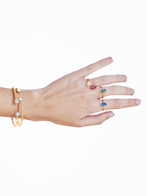 Anillos ovalados de cristal Swarovski. Es posible ajustarlos en talla y combinar varios en un mismo dedo.