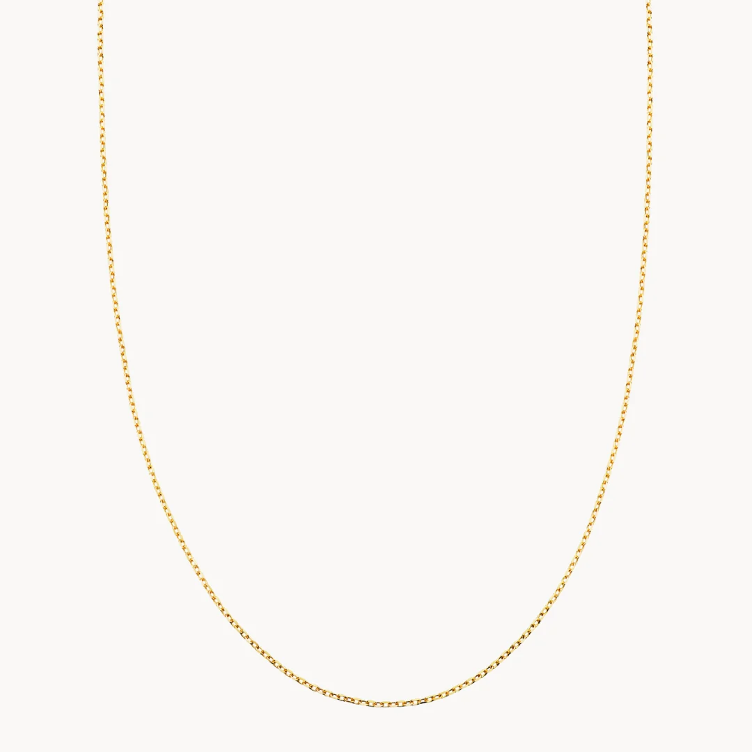 Cadena de oro amarillo de 18 kilates maciza con eslabones tipo forzada. Largo total de 45cm con un ancho de eslabón de 0.75mm. Perfecta para llevarla sola o combinándola con un colgante.