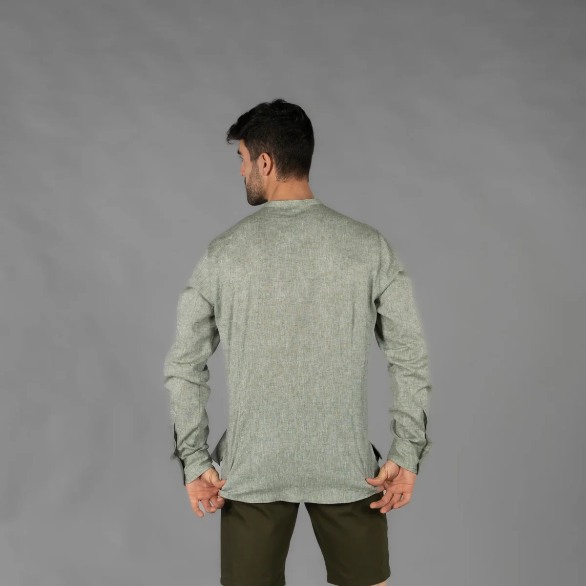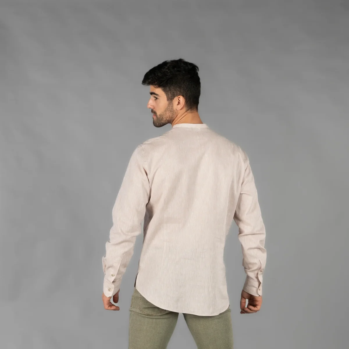 El cuello mao de esta camisa es una declaración de elegancia moderna y autoridad. Su diseño pulido agrega un toque de formalidad a tu atuendo, comunicando que estás listo para liderar y tomar el control en cualquier situación. Este cuello es una extensión de tu profesionalismo y determinación.