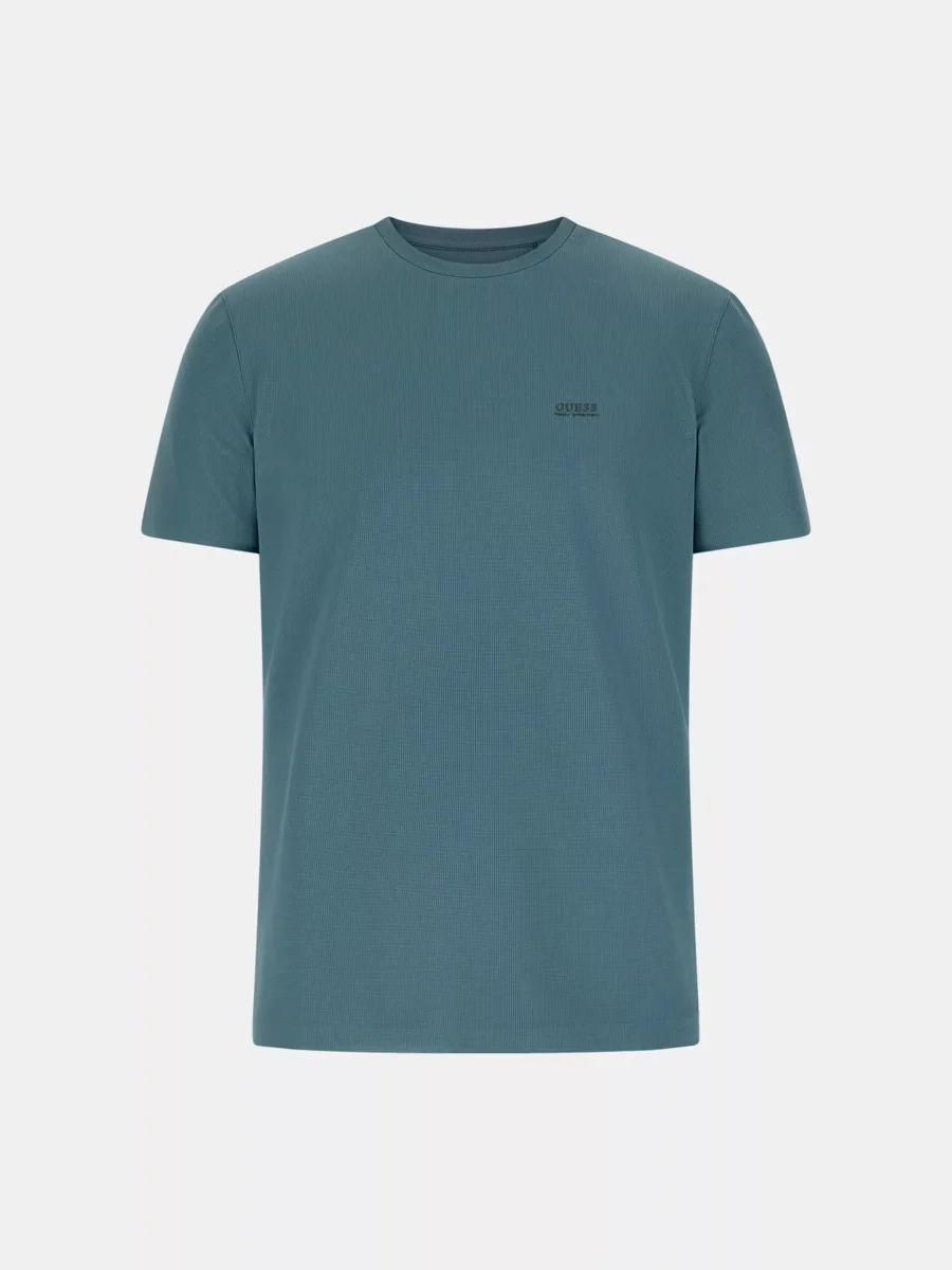 Su corte Slim Fit se ajusta ligeramente al cuerpo, realzando la silueta masculina sin apretar. El tejido de punto piqué añade una sutil textura que diferencia esta camiseta del resto, aportando un aire más sofisticado que el algodón convencional. El color verde grisáceo (G7EX) le da un toque fresco y actual que combina fácilmente con vaqueros, chinos o bermudas.