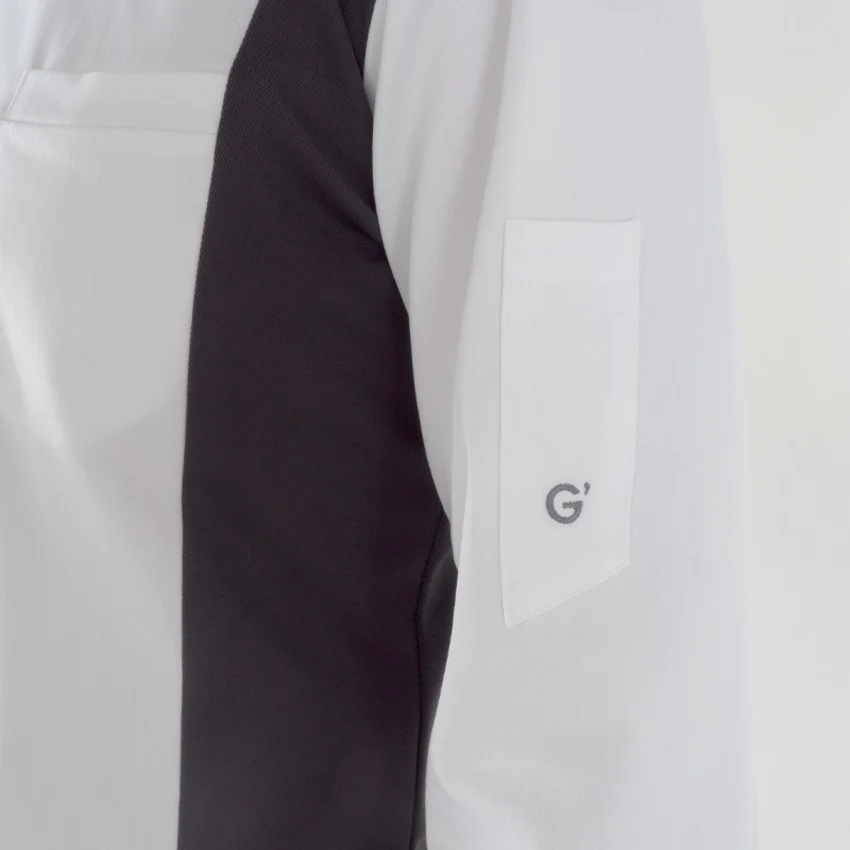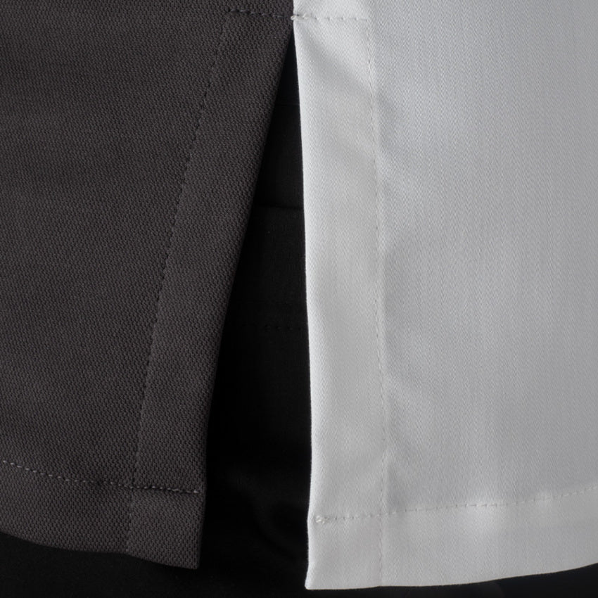La chaqueta Alec de diseño francés presenta una línea geométrica, con un corte Slim Fit. La parte central del cuerpo está confeccionada en tejido de satén elástico, mientras que los laterales, tanto en la parte delantera como en la trasera, son de suave punto de piqué, a contraste en la variante blanca y a juego en la variante negra. La chaqueta Alec es extremadamente transpirable y cómoda y garantiza una gran libertad de movimientos. El cuello y los puños se caracterizan por elementos en contraste que realzan la geometría de la prenda, mientras que la tapeta con broches metálicos queda oculta. Fácil de planchar.