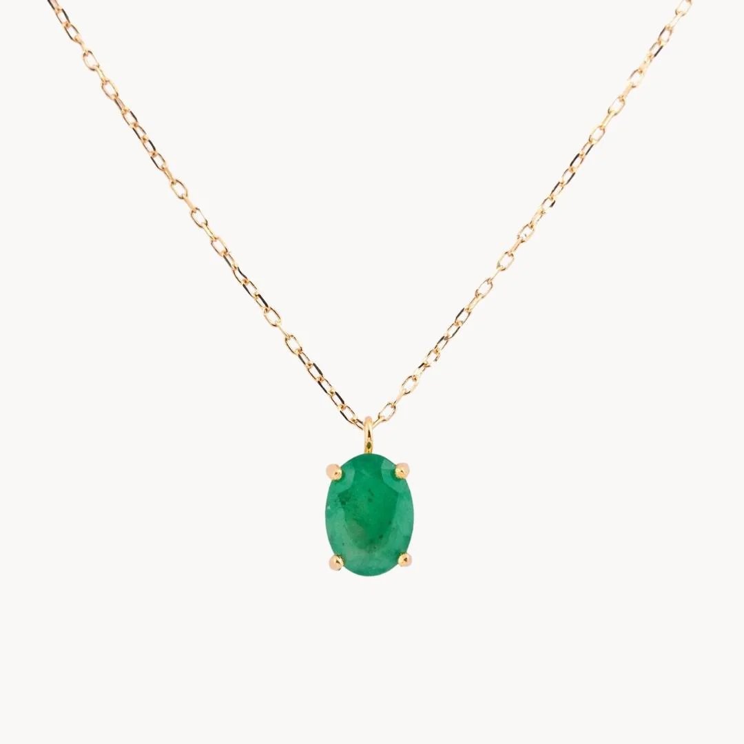Cadena y colgante de oro amarillo de 18 kilates con una esmeralda natural en talla oval engastada en cuatro garras.