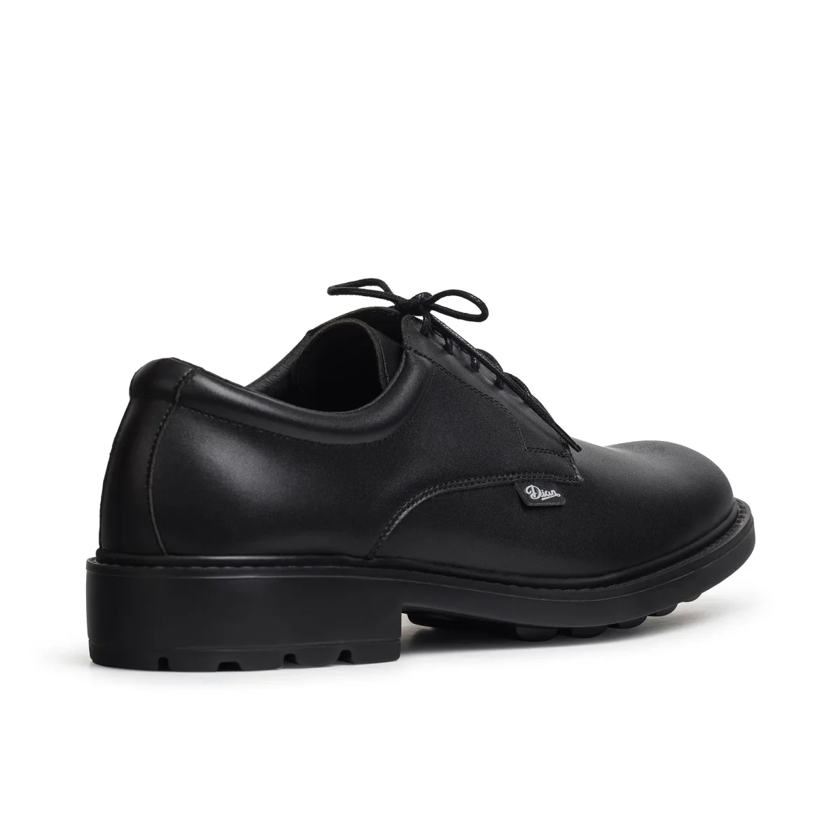 Zapato tipo blucher y cierre de cordones. Corte de piel micro D’COVER PLUS®, forrado interiormente con microfibra técnica D’DRY®, acolchado en el tobillo para evitar rozaduras. Horma recta de puntera redondeada. Contrafuerte de dureza suficiente para sujetar el calcáneo. Plantilla acolchada de microfibra técnica sobre espuma de poliuretano termoconformado con tratamiento antibacterias y carbón activado. Suela de material compuesto EVA D’LIGHT®, ultra ligera, confortable, flexible y antideslizante.