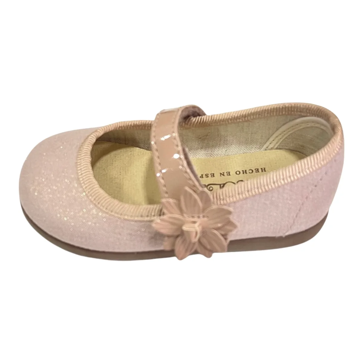 Merceditas en rosa de niña, para un look más formal y elegante de tu niña, con cierre de velcro para más facilidad en la puesta y con una flor en color rosa.