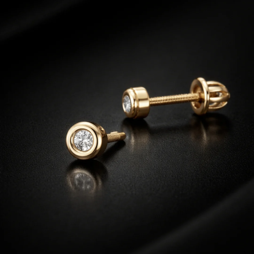 • PENDIENTES CON DIAMANTE CHATON 0.030 QUILATES PUNTO DE LUZ